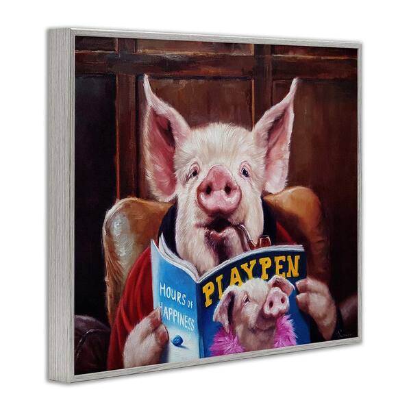 Funny Pig Magazine Man Cave by Lucia Heffernan 1-Piece Gray Framed Animal Giclee Art Print 16 in. x 20 in.