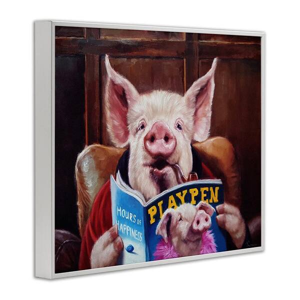 Funny Pig Magazine Man Cave by Lucia Heffernan 1-Piece White Framed Animal Giclee Art Print 20 in. x 16 in.
