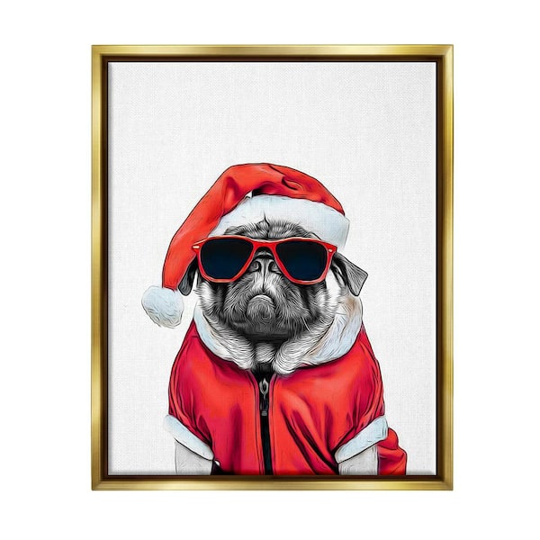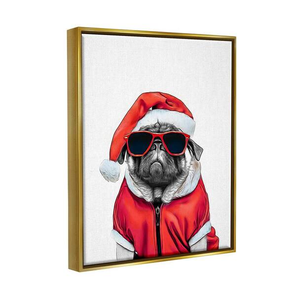 Funny Pug Santa Hat by Annalisa Latella 1-Piece Floater Frame Graphic Print Animal Poster Art Print 21 in. x 17 in.