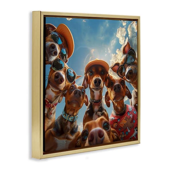 Funny Wiener Dog Selfie by Jim Baldwin Gold Floater Frame Animal Graphic Art Print 18 in. x 18 in.