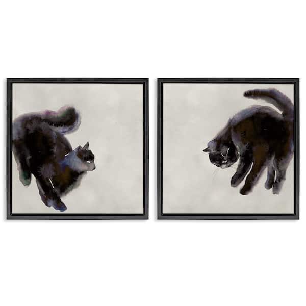 Fuzzy Black Cats on Beige by Melissa Wang 2-Pieces Black Floater Frame Animal Graphic Art Print 18 in. x 18 in.