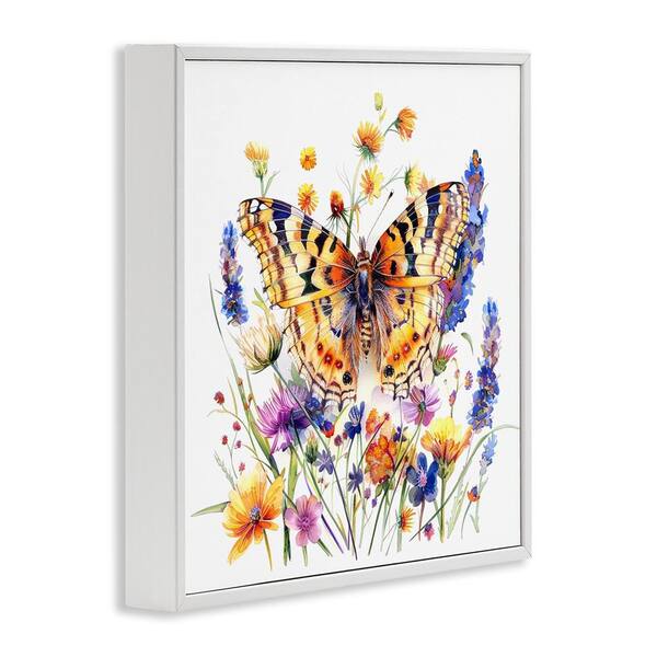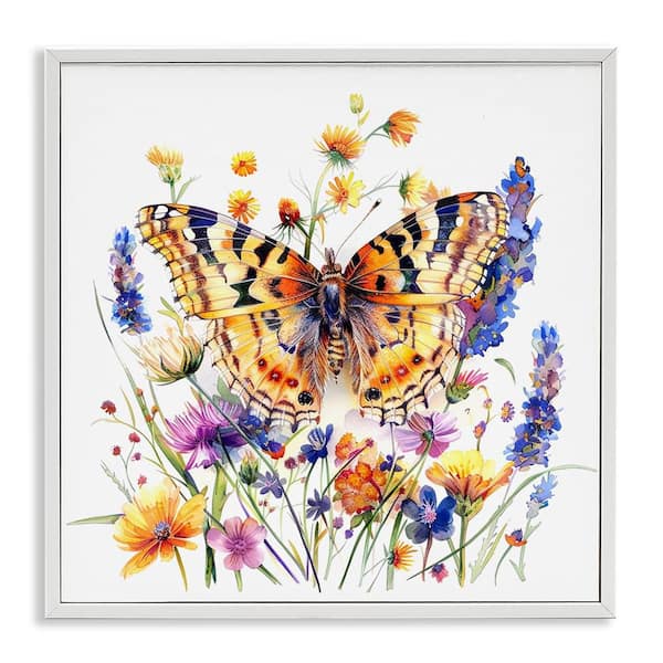 Garden Flowers and Butterfly by LSR Design Studio White Framed Animal Giclee Art Print 17 in. x 17 in.