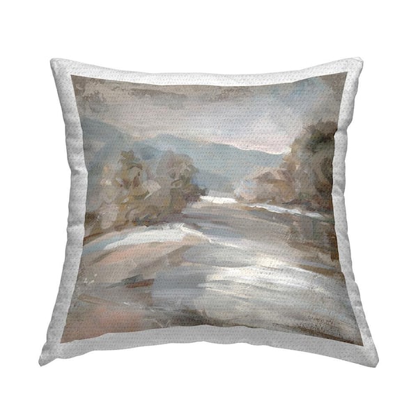 Gentle Valley Abstract Landscape Tan Square Outdoor Throw Pillow