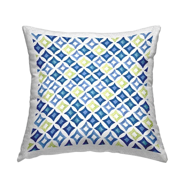 Geometric Diamond Shapes Blue Square Outdoor Throw Pillow