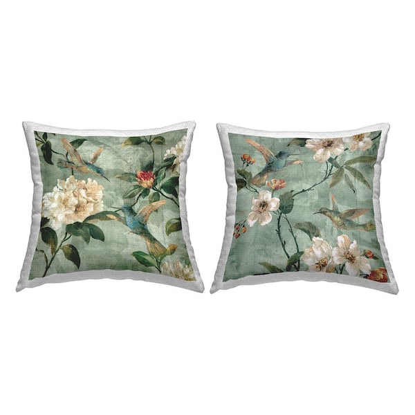 Geraniums and Hummingbirds Off-White Square Outdoor Throw Pillow 2-Pack