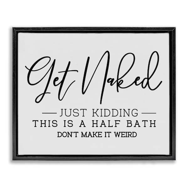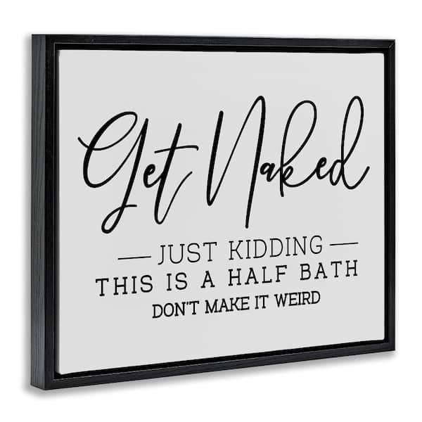 Get Naked Funny Bathroom by LSR Design Studio 1-Piece Black Floater Frame Abstract Graphic Art Print 21 in. x 17 in.