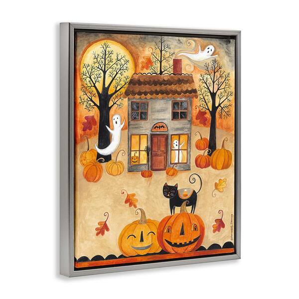 Ghost on Halloween Night by Bernadette Deming 1-Piece Floater Frame Graphic Print Architecture Art Print 21 in. x 17 in.
