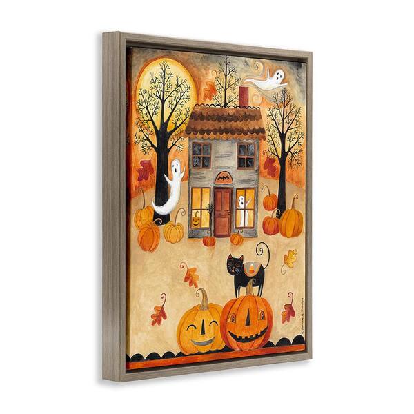 Ghost on Halloween Night by Bernadette Deming 1-Piece Floater Frame Graphic Print Architecture Art Print 31 in. x 25 in.