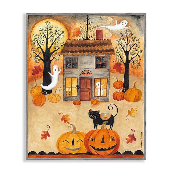 Ghosts on Halloween Night by Bernadette Deming 1-Piece Framed Graphic Print Architecture Art Print 30 in. x 24 in.