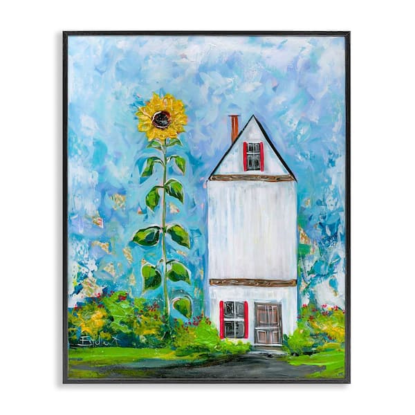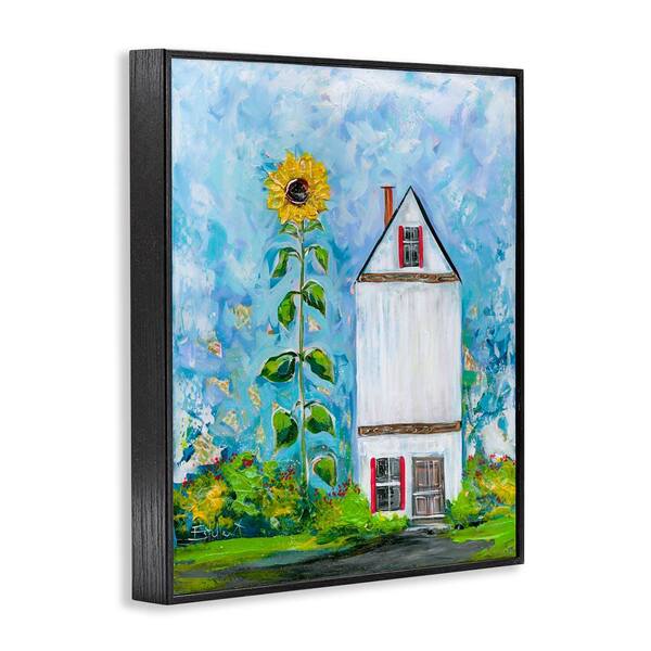 Giant Sunflower & House by Estelle Grengs Black Framed Nature Giclee Art Print 14 in. x 11 in.