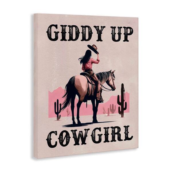 Giddy Up Brunette Cowgirl by Lettered and Lined Unframed People Graphic Art Print 48 in. x 36 in.