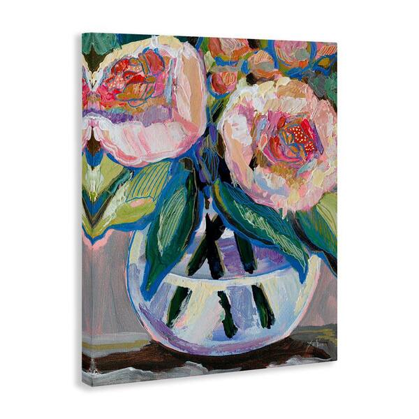 Gifted Pink Peonies by Jeanette Vertentes Unframed Nature Graphic Art Print 48 in. x 36 in.