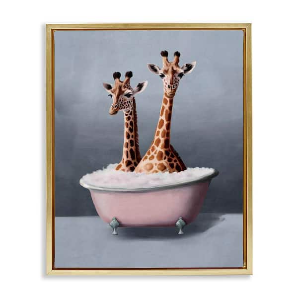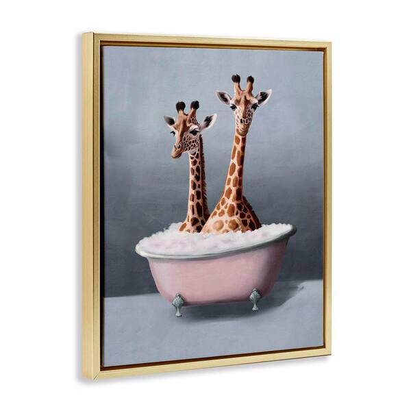 Giraffe Pair in Tub by Svetlana Aleynikova Gold Floater Frame Animal Graphic Art Print 31 in. x 25 in.