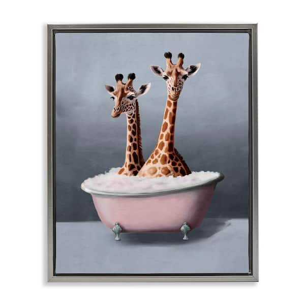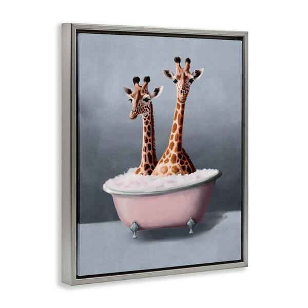 Giraffe Pair in Tub by Svetlana Aleynikova Gray Floater Frame Animal Graphic Art Print 31 in. x 25 in.