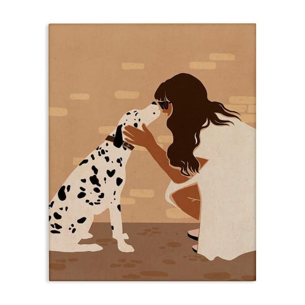 Girl Hugging Dalmatian by Svetlana Aleynikova Unframed People Graphic Art Print 30 in. x 24 in.