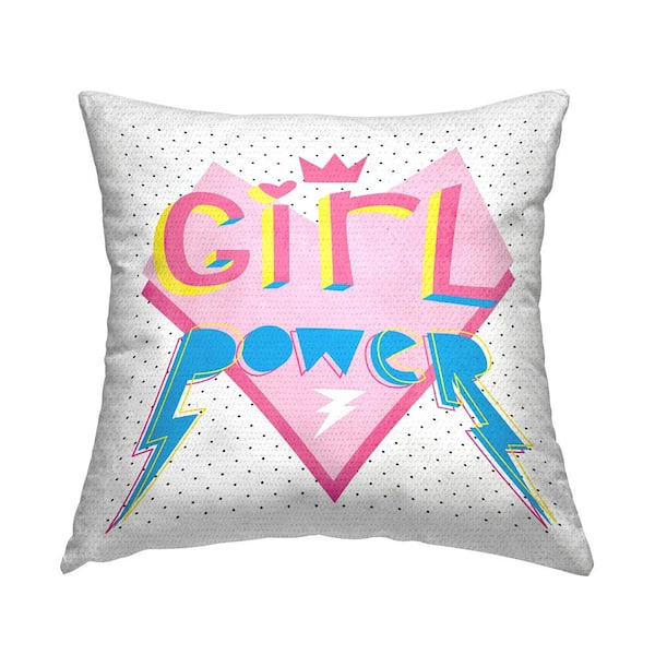 Girl Power Retro Heart Pink Square Outdoor Throw Pillow
