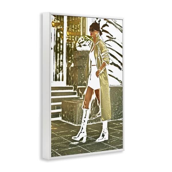 Girl in Gold Trenchcoat by Graffi*tee Studios White Framed People Giclee Art Print 18 in. x 12 in.