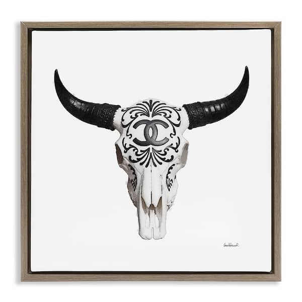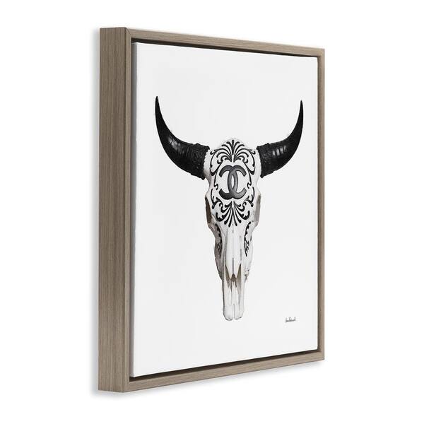 Glam Brand Cow Skull by Amanda Greenwood Brown Floater Frame Animal Graphic Art Print 18 in. x 18 in.