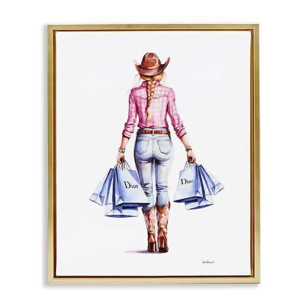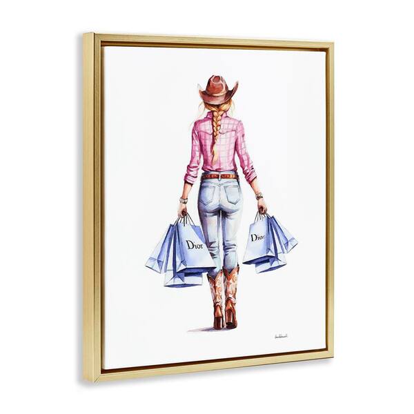 Glam Cowgirl Pink Plaid by Amanda Greenwood Gold Floater Frame People Graphic Art Print 31 in. x 25 in.