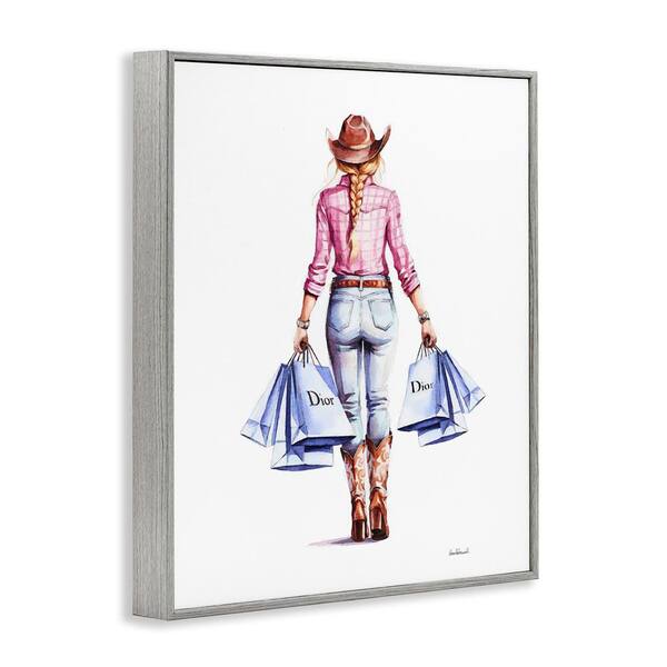 Glam Cowgirl Pink Plaid by Amanda Greenwood Gray Framed People Giclee Art Print 30 in. x 24 in.