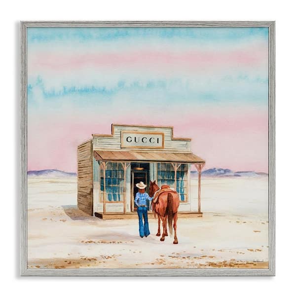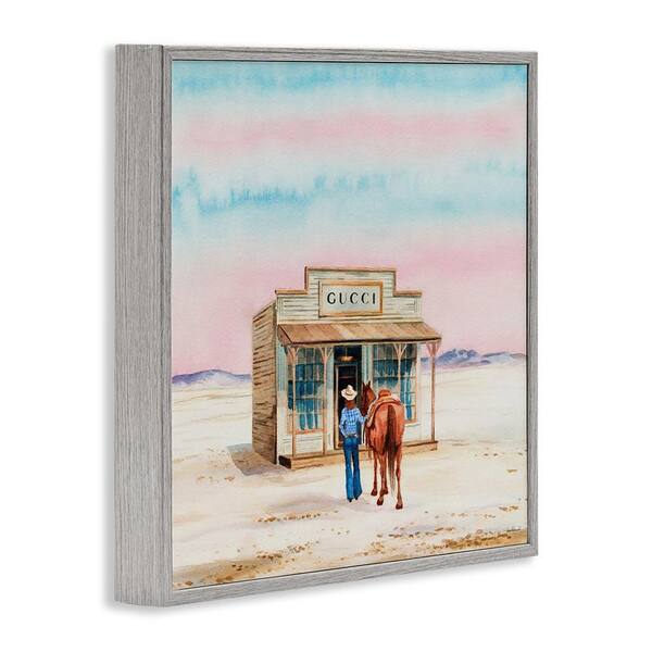 Glam Cowgirl at Desert Shop by Amanda Greenwood Gray Framed Nature Giclee Art Print 24 in. x 24 in.