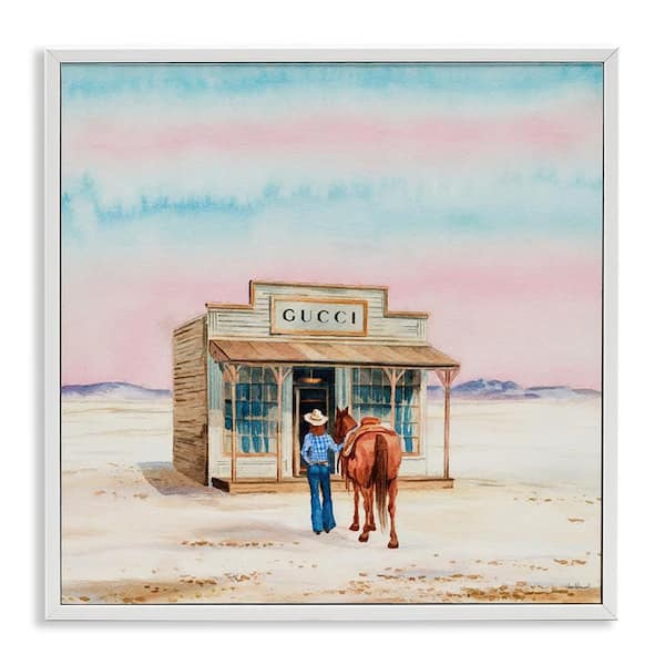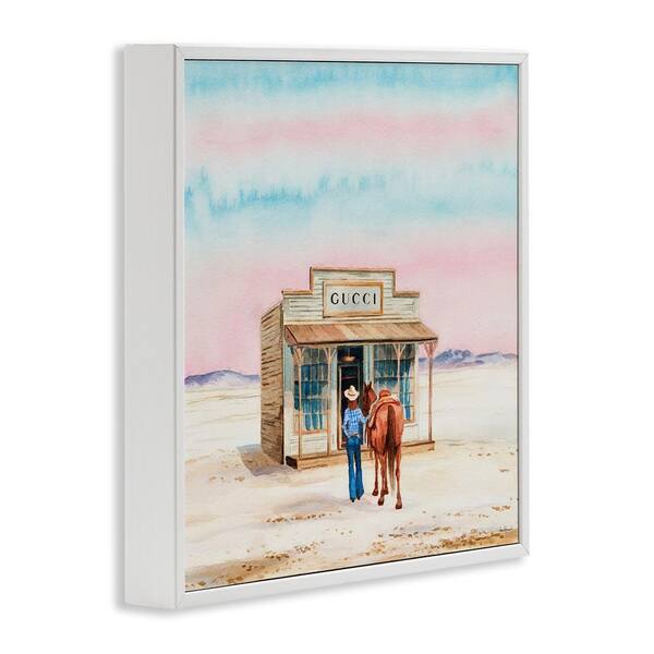 Glam Cowgirl at Desert Shop by Amanda Greenwood White Framed Nature Giclee Art Print 24 in. x 24 in.