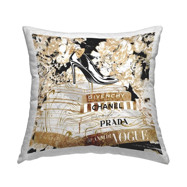 Glam Fashion Heal Book Stack Floral Pattern Printed Pillow Black Square Outdoor Throw Pillow