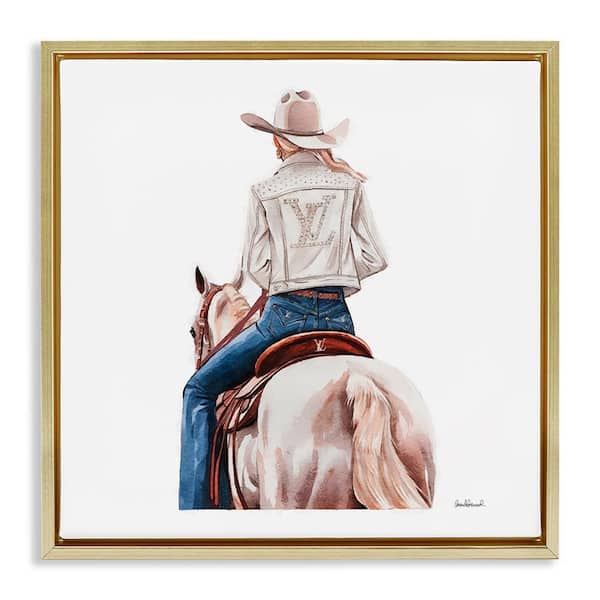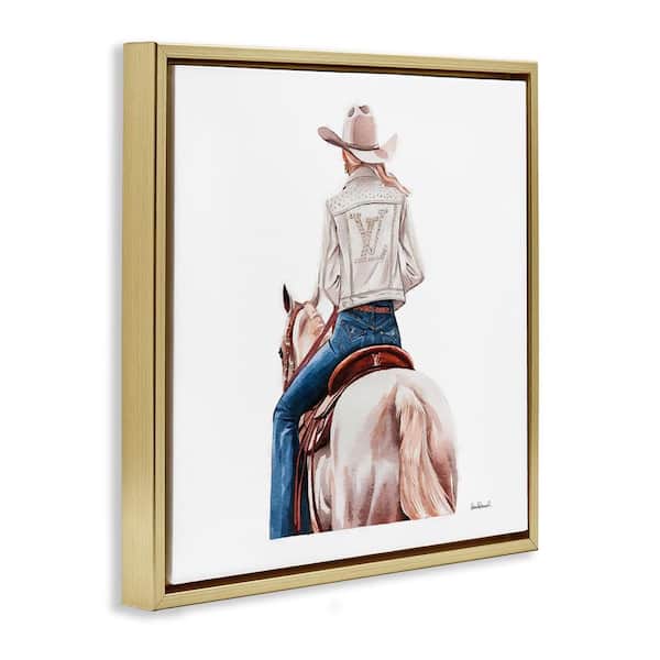 Glam Girl on White Horse by Amanda Greenwood Gold Floater Frame People Graphic Art Print 18 in. x 18 in.