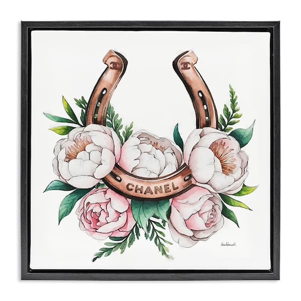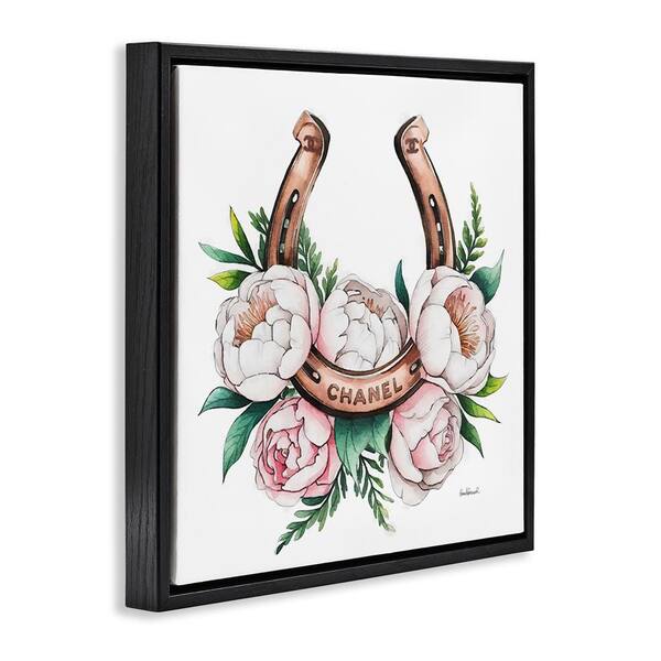 Glam Peonies and Horseshoe by Amanda Greenwood Black Floater Frame Nature Graphic Art Print 25 in. x 25 in.