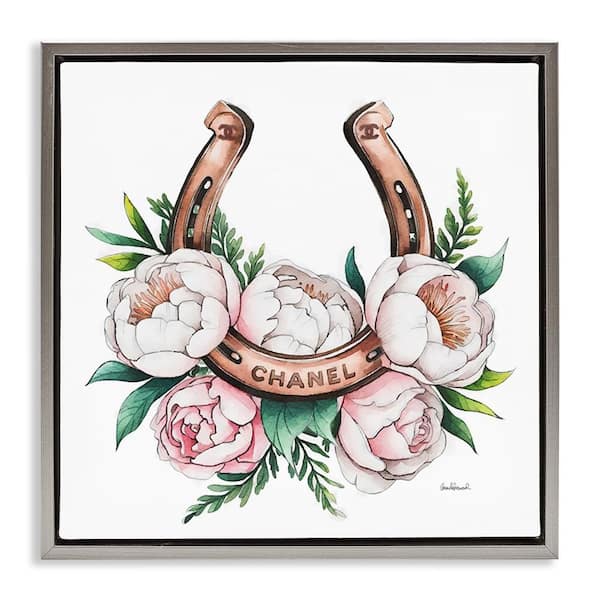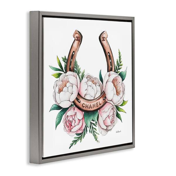 Glam Peonies and Horseshoe by Amanda Greenwood Gray Floater Frame Nature Graphic Art Print 25 in. x 25 in.