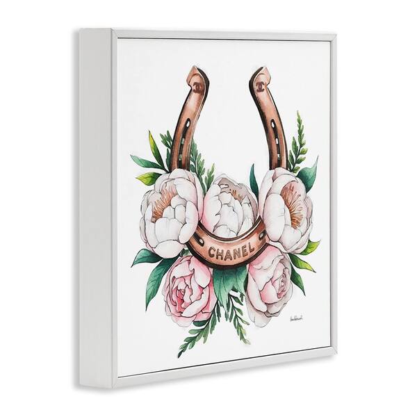 Glam Peonies and Horseshoe by Amanda Greenwood White Framed Nature Giclee Art Print 24 in. x 24 in.