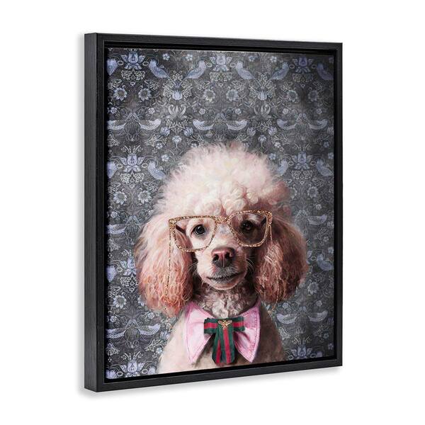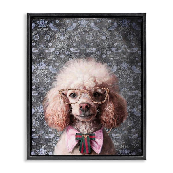 Glam Poodle on Florals by Svetlana Aleynikova Black Floater Frame Animal Graphic Art Print 21 in. x 17 in.