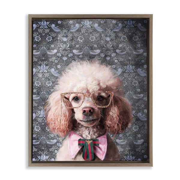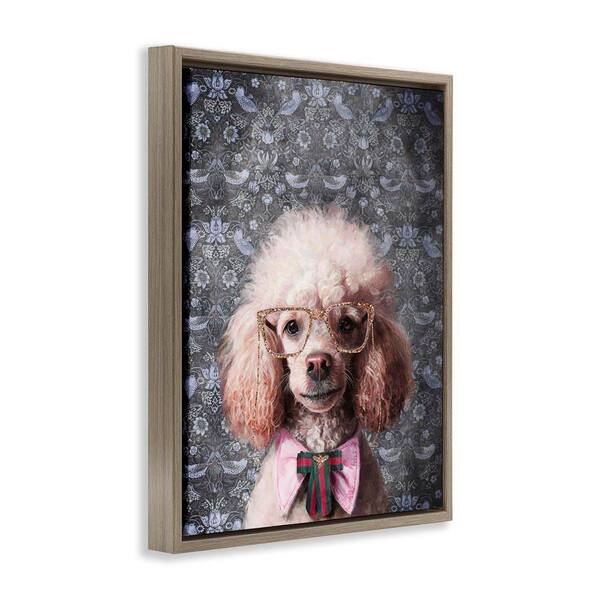 Glam Poodle on Florals by Svetlana Aleynikova Brown Floater Frame Animal Graphic Art Print 21 in. x 17 in.