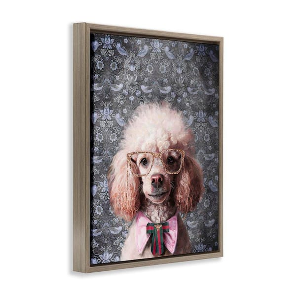 Glam Poodle on Florals by Svetlana Aleynikova Brown Floater Frame Animal Graphic Art Print 31 in. x 25 in.