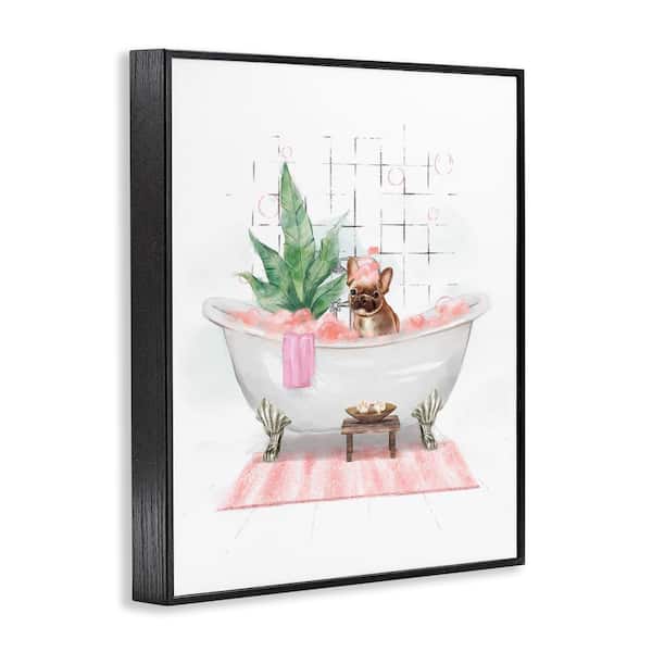 Glam Pug in Tub by Ziwei Li Black Framed Animal Giclee Art Print 30 in. x 24 in.