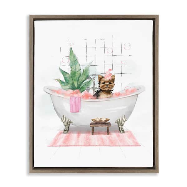 Glam Pup in Tub by Ziwei Li Brown Floater Frame Animal Graphic Art Print 21 in. x 17 in.