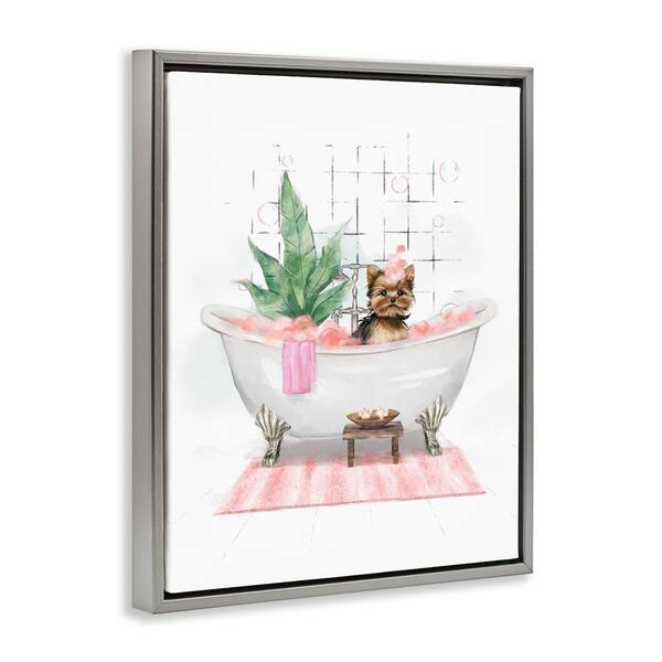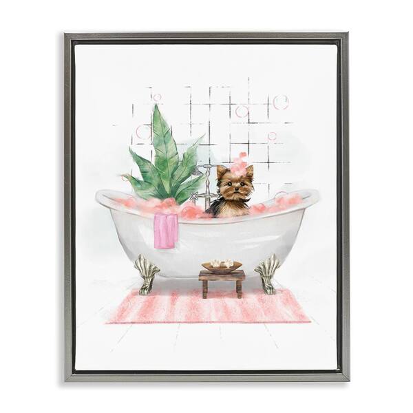 Glam Pup in Tub by Ziwei Li Gray Floater Frame Animal Graphic Art Print 21 in. x 17 in.