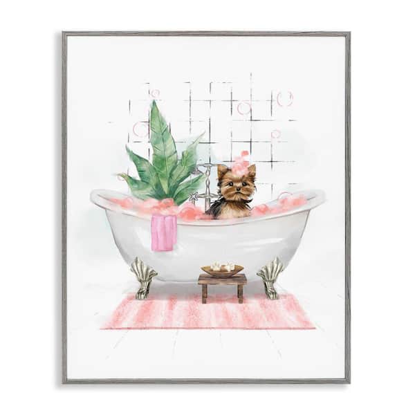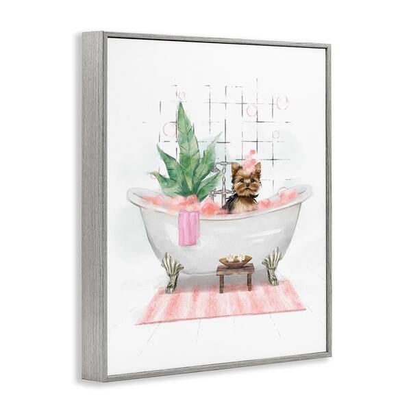 Glam Pup in Tub by Ziwei Li Gray Framed Animal Giclee Art Print 14 in. x 11 in.
