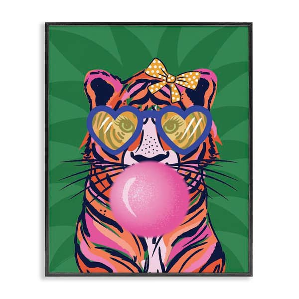 Glam Tiger Bubble Gum by Lisa Perry Whitebutton Black Framed Animal Giclee Art Print 30 in. x 24 in.