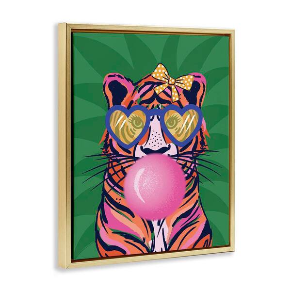 Glam Tiger Bubble Gum by Lisa Perry Whitebutton Gold Floater Frame Animal Graphic Art Print 21 in. x 17 in.