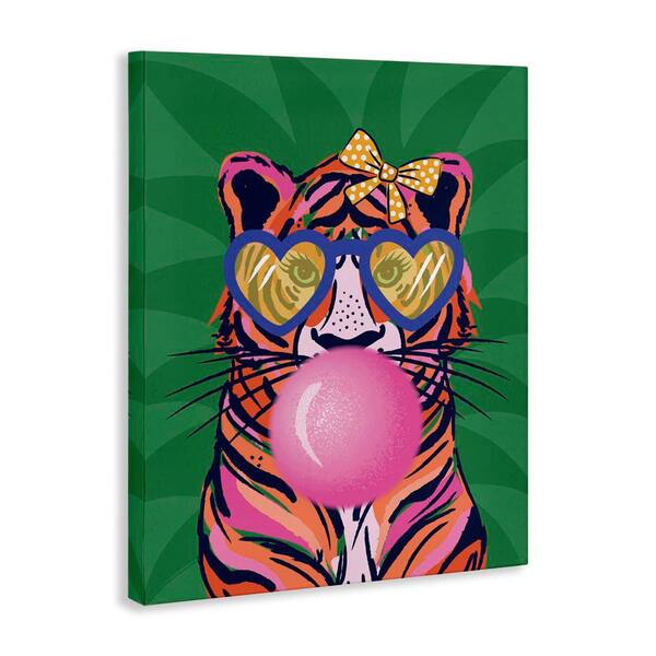 Glam Tiger Bubble Gum by Lisa Perry Whitebutton Unframed Animal Graphic Art Print 30 in. x 24 in.