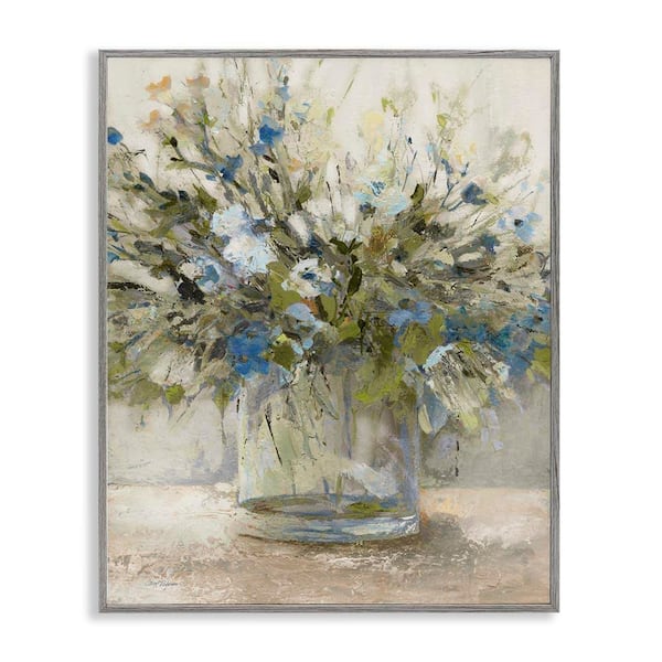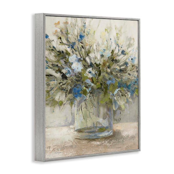 Glass Vase Botanics by Carol Robinson Gray Framed Nature Giclee Art Print 30 in. x 24 in.