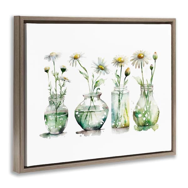 Glass Vases Daisies by Svetlana Aleynikova Brown Floater Frame Nature Graphic Art Print 17 in. x 21 in.