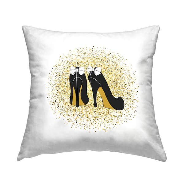 Glimmer Bow Heels Gold Print Polyester 18 in. x 18 in. Throw Pillow