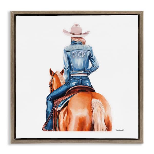 Glitzy Cowgirl & Horse by Amanda Greenwood Brown Floater Frame People Graphic Art Print 25 in. x 25 in.