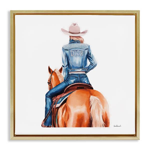 Glitzy Cowgirl & Horse by Amanda Greenwood Gold Floater Frame People Graphic Art Print 25 in. x 25 in.