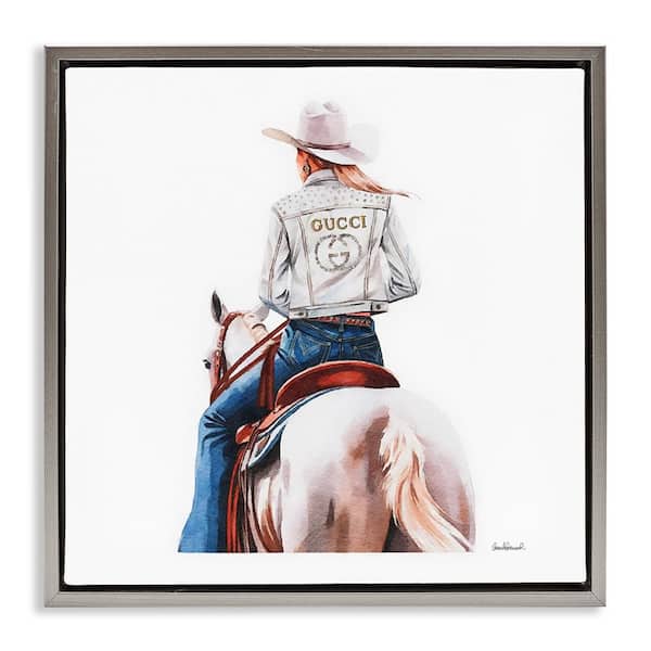 Glitzy Cowgirl White Horse by Amanda Greenwood Gray Floater Frame People Graphic Art Print 18 in. x 18 in.