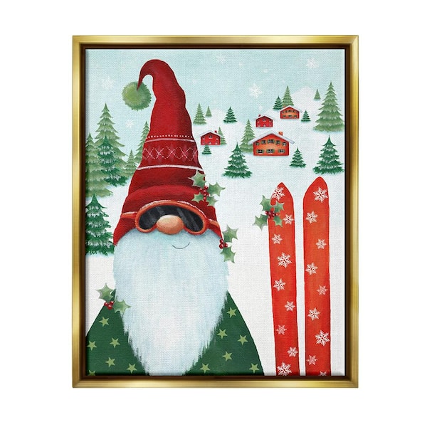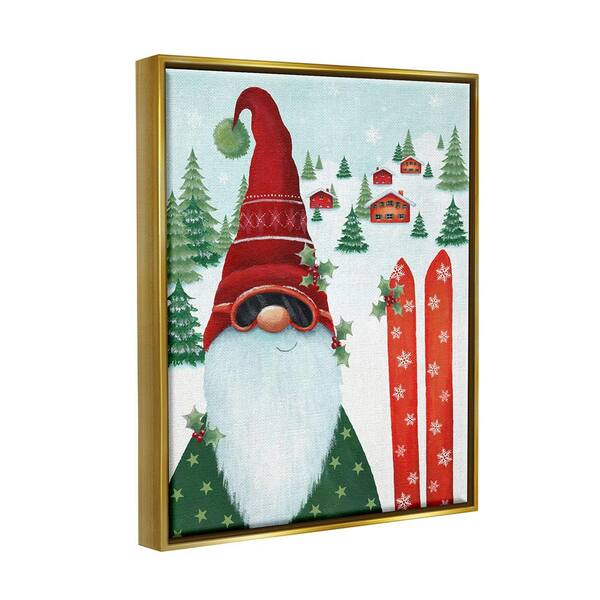 Gnome Skiing Winter Slopes by Emma Leach 1-Piece Floater Frame Graphic Print Nature Poster Art Print 21 in. x 17 in.