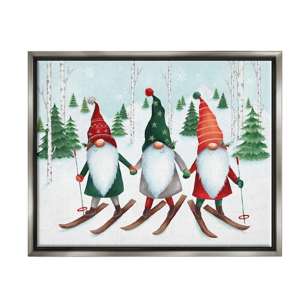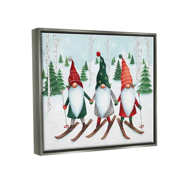 Gnome Trio Skiing by Emma Leach 1 Piece Floater Frame Graphic Print Sports Poster Art Print 31 in. x 25 in.