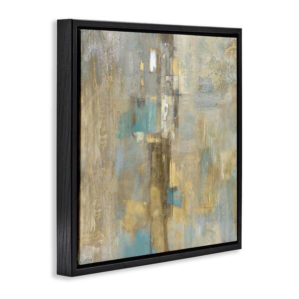 Gold Abstract with Blue by Justin Turner Black Floater Frame Abstract Graphic Art Print 25 in. x 25 in.